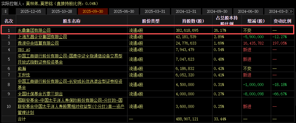 小财注:截至三季度末,永鼎集团位列永鼎股份第一大股东,持股3.83亿股,占公司总股本的26.17%。永鼎股份9月17日公告,永鼎股份计划于2025年10月17日~2026年1月16日通过集中竞价、大宗交易方式合计减持公司股份不超过4385.97万股,即不超过公司总股本的3%。