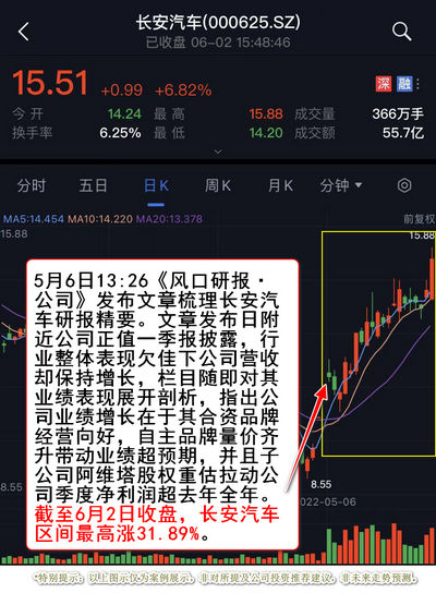 截至6月2日收盘,长安汽车区间最高涨31.89%。