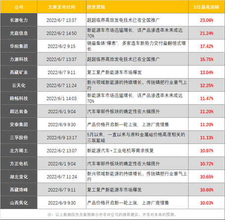 以近期栏目的梳理为例。6月以来《盘中宝》跟踪解读超超临界发电、锂电、光伏等盘面热点,梳理出多家优质的上市公司,详情如下: