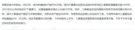文中提及三孚股份,其近期公告显示,公司拟在5万吨/年三氯氢硅项目基础上扩建7.22万吨/年三氯氢硅项目,项目投资总额7526.52万元。三孚股份在6月10日涨停,截至收盘,区间最高涨幅达11.13%。