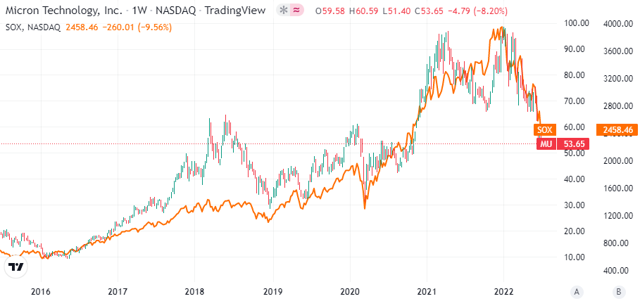 而放眼半导体行业,美光并不是唯一一家承压的公司,全球半导体业景气基准指标之一的费城半导体指数年初至今已累跌超37%。