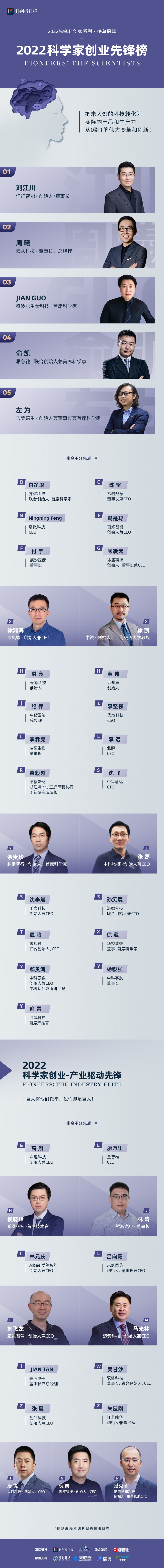 本次评选,共产生了分属4个榜单的97位先锋科创家,他们是:30位科学家创业先锋、15位科学家创业-产业驱动先锋、20位女性科创先锋,以及32位科创精英。