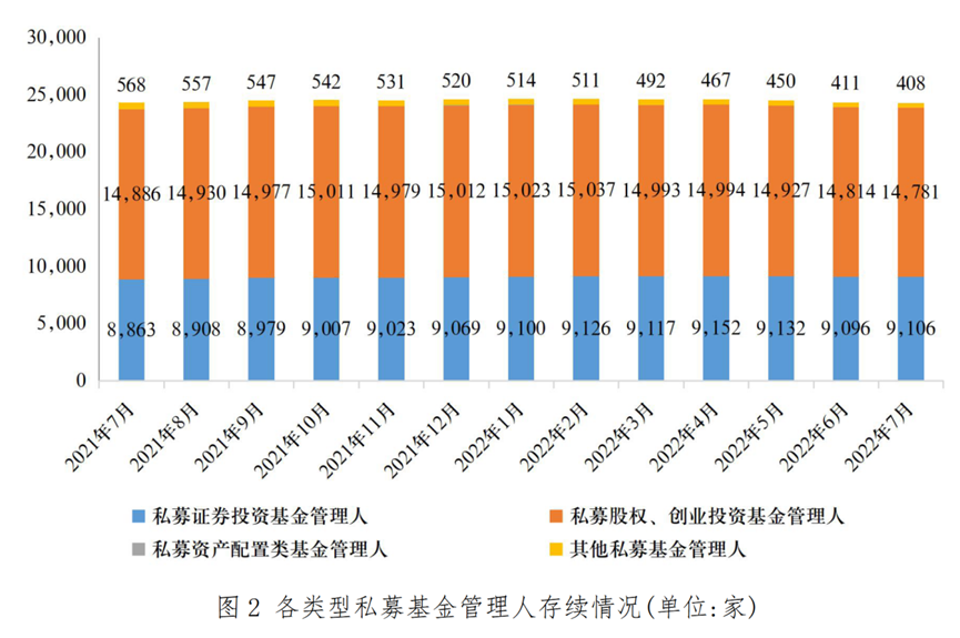 截至7月末,存续私募基金管理人2.4万家,较上月减少26家,其中3家由私募基金管理人转为公募基金管理公司私募基金子公司。