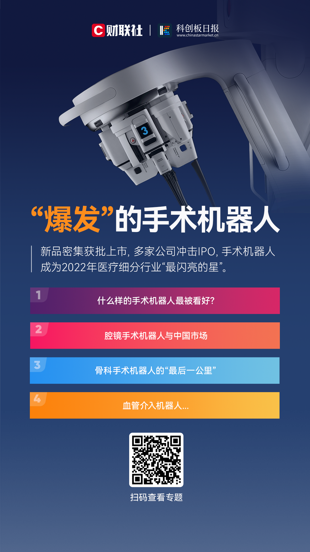 公开资料显示,手术机器人被誉为下一代外科手术的新方式,已成为医疗装备产业中最热门的细分赛道之一。在众多手术机器人中,又以腔镜手术机器人率先实现了技术突破,并在商业化上取得成功。