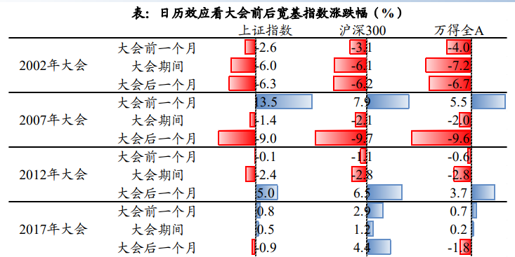 另外,当前进入重要会议预热期,东吴证券姚佩也统计了日历效应。总体看大会召开前一个月市场以横盘震荡为主,而大会后市场波动将会加大。叠加国庆长假的避险效应,指数当前震荡的概率加大。