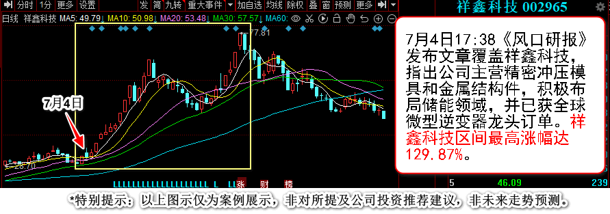 祥鑫科技此后加速攀升,区间最高涨幅达129.87%。