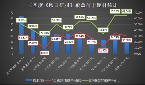 【三季度《风口研报》子栏目覆盖上市公司涨幅概况】