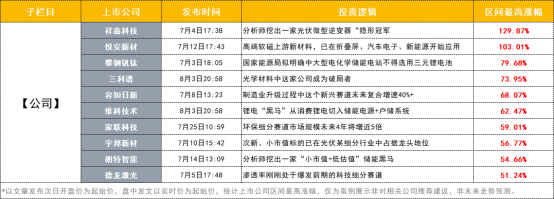【公司】侧重于挖掘上市公司内在逻辑,研究内容包括不限于公司目前经营状况、行业现状、未来发展、盈利情况等多方面情况。三季度【公司】子栏目覆盖上市公司优质表现见下表:
