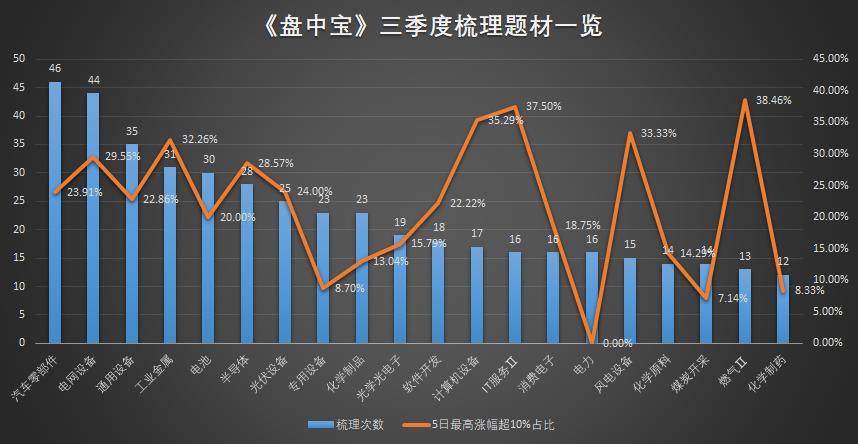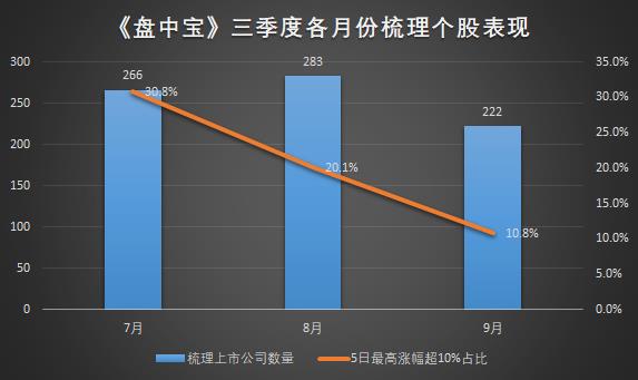 三季度题材轮动节奏较快,热点持续较差,但是依旧有不少公司逆势冲榜成功!复盘《盘中宝》栏目数据,如果要登上栏目梳理的优质案例榜单,门槛最低也要涨超50%。