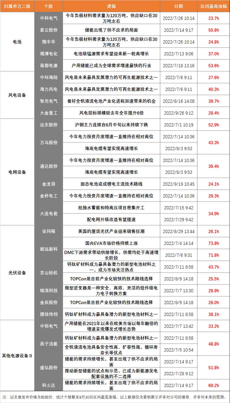 三季度期间,电力设备成为市场焦点备受关注,细分方向来看,电池、风电设备、电网设备、电源设备等环节都获得资金关注,诞生多轮上涨行情且大涨股频现。《盘中宝》持续跟踪、梳理出行业内重磅消息,解读资讯背后的价值,把握的细分方向及上市公司如下: