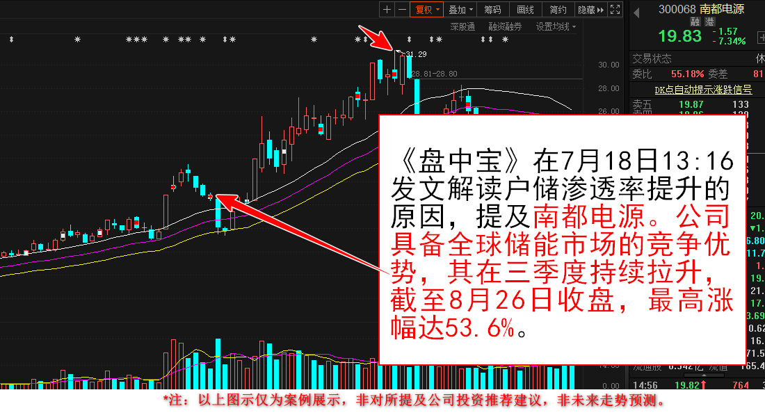上市公司中,南都电源的储能电站已经2GWh以上,积累了大量的丰富经验,应用于国内外的用户侧、电网侧,发电侧的各种场景。南都电源具备全球储能市场的竞争优势,其在三季度中受到资金关注持续拉升,截至8月26日收盘,其最高涨幅达53.6%。