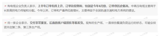 此外,《盘中宝》在8月3日09:53获悉“电线电缆企业订单大增,相关公司开足马力生产”,随即发文《订单和产量两位数增长,工厂几乎满负荷生产》,梳理出产业链其它公司的动态: