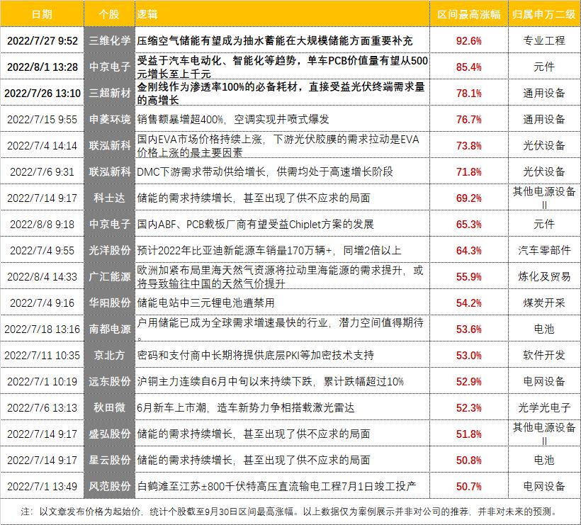 【三】三季度大涨榜门槛超50%!王牌栏目助力“掘金”电池、电力设备、光伏等上涨关键词