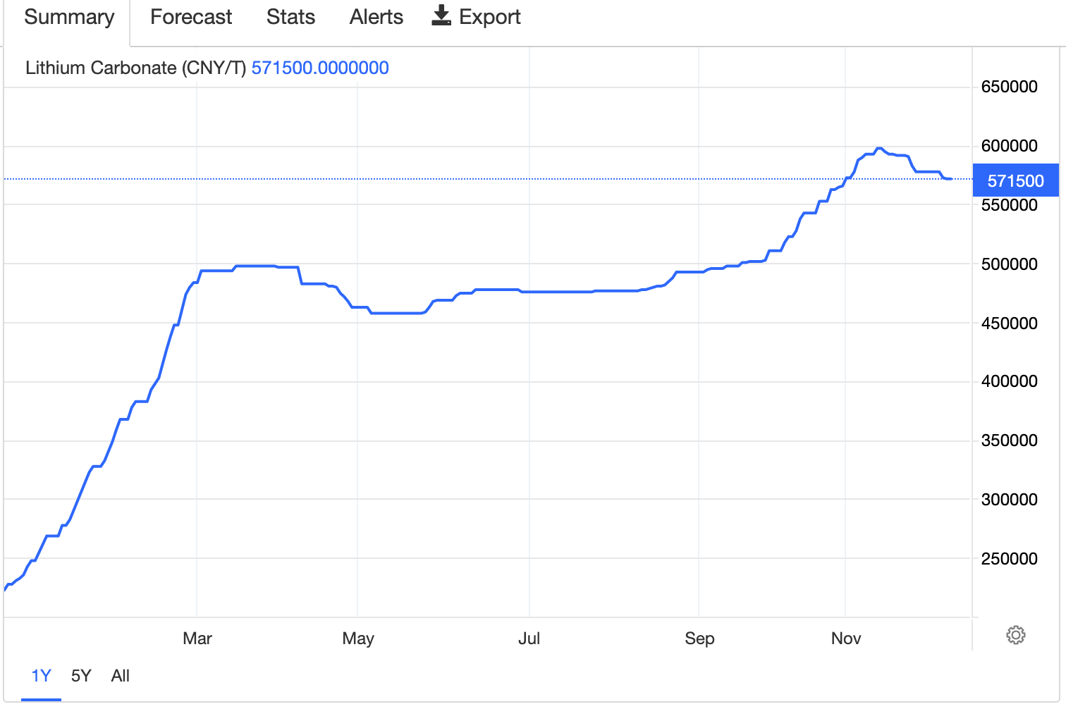 (碳酸锂今年价格走势,来源:TradingEconomics)