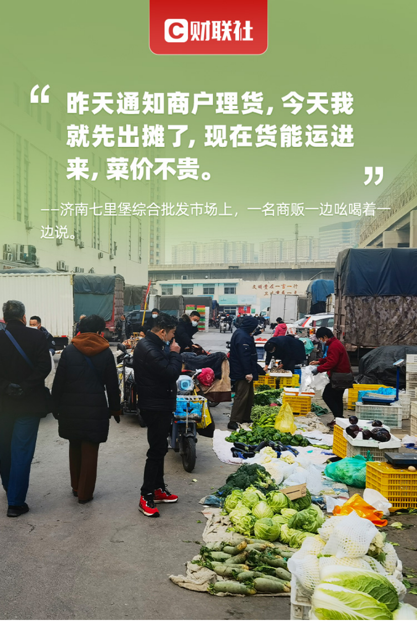 “昨天通知我们来理货,今天我就出来摆摊了,在家一天也坐不住。”济南七里堡综合批发市场上,一名商贩一边吆喝着,一边向财联社记者说道,“买菜的人不少,现在货能运进来,菜价不贵。”市场的开放方便了居民,让济南也开始恢复往日烟火气。