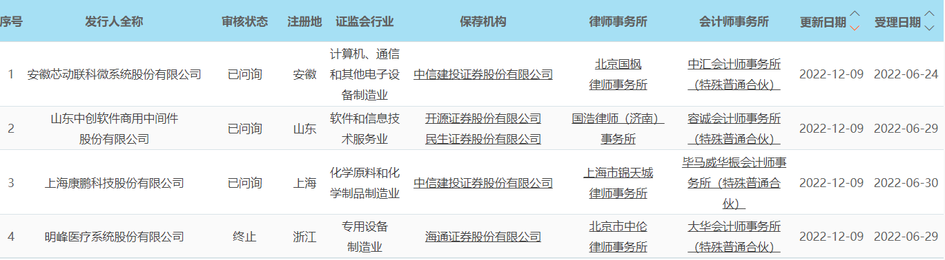 4家科创板拟上市公司发审状态更新
