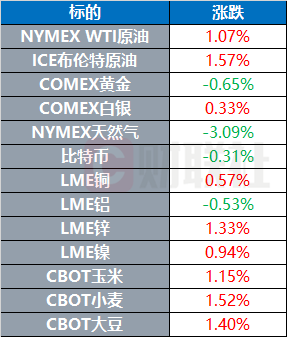 芝加哥期货交易所玉米、小麦和大豆期价全线上涨。玉米市场交投最活跃的3月合约收于每蒲式耳6.825美元,比前一交易日上涨7.75美分,涨幅为1.15%;小麦3月合约收于每蒲式耳7.525美元,比前一交易日上涨11.25美分,涨幅为1.52%;大豆3月合约收于每蒲式耳15.235美元,比前一交易日上涨21美分,涨幅为1.40%。