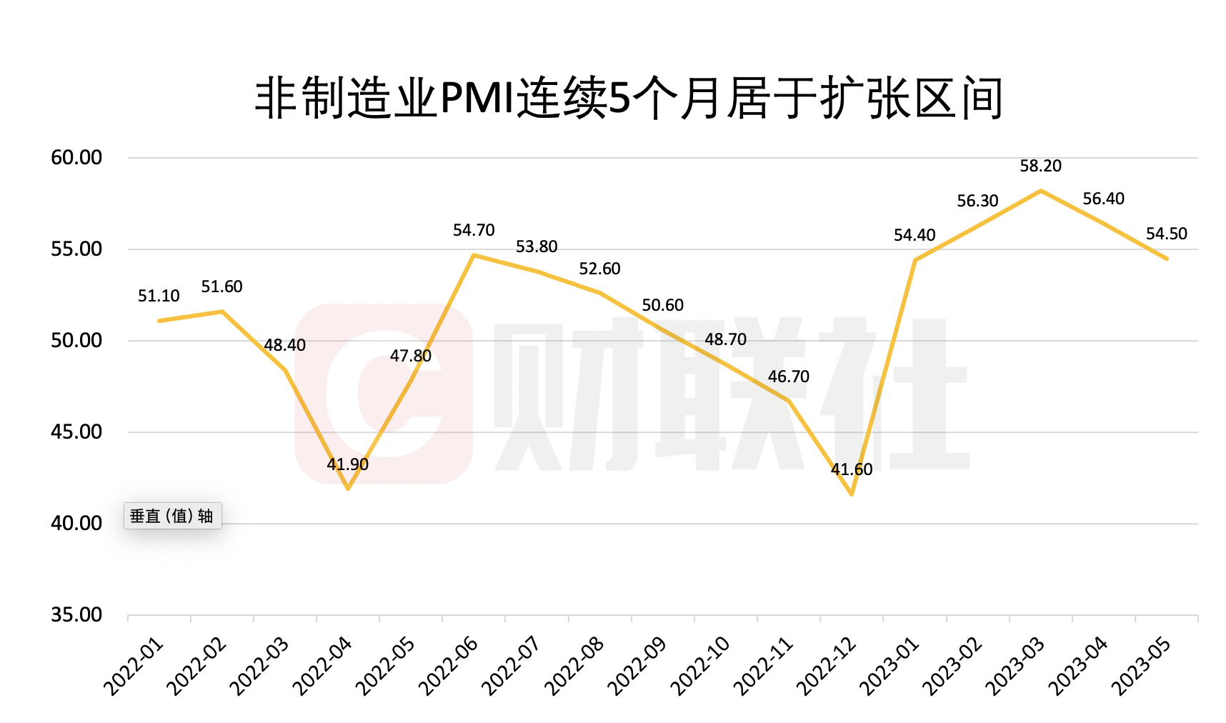 数据显示,5月份,非制造业商务活动指数为54.5%,虽然比上月下降1.9个百分点,但仍高于临界点,非制造业延续恢复性增长。