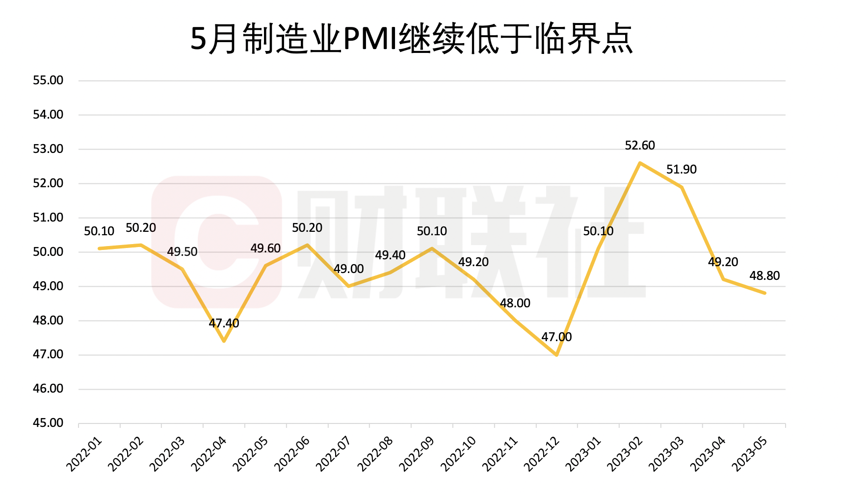 财联社5月31日讯(记者 徐川) 国家统计局今日发布数据显示,5月制造业采购经理指数(PMI)为48.8%,比上月下降0.4个百分点,继续低于临界点。