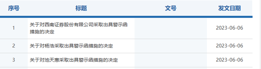 财联社6月6日讯(记者 黄靖斯)5月来券商研报罚单密集发出,西南证券“一案三罚”再敲警钟。6月6日,事出研报业务多项违规,西南证券及2名分析师分别被重庆证监采取出具警示函措施。