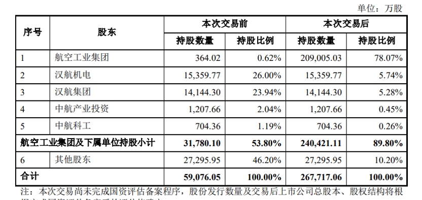 目前,中航电测总股本约5.91亿股。本次交易公司拟发行股份数量合计20.86亿股,占发行后中航电测总股本的77.93%。且本次交易完成后,航空工业及下属单位持股合计占比89.8%,使其他股东持股恰好超过10%的持股下限要求。