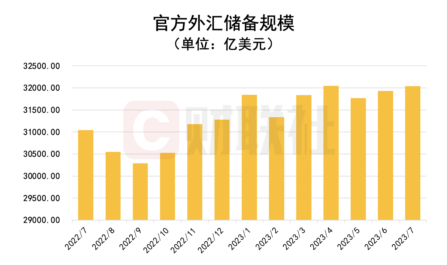 国家外汇管理局指出,7月,受主要经济体货币政策及预期、世界宏观经济数据等因素影响,美元指数下跌,全球金融资产价格总体上涨。汇率折算和资产价格变化等因素综合作用,当月外汇储备规模上升。