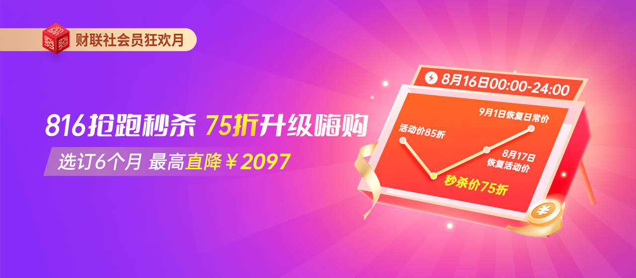 此外,会员月期间消费金额超3000,即可1元加购「尊享权益包」,深度链接热门行业专家。会员月期间更有财联社VIP直播间开门营业,特邀财联社VIP资讯主笔、财经大V、专家助阵,助你换个角度看市场。