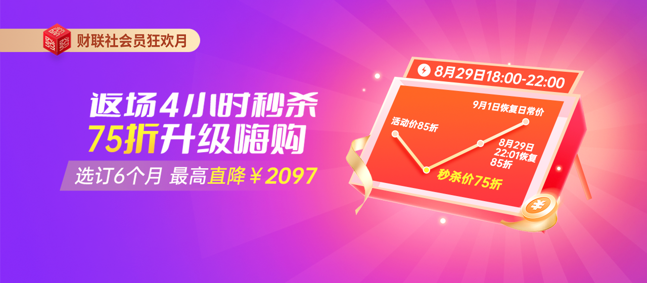 最后3天!财联社8月会员月即将结束,以下三重好礼,错过只能再等一年哦~1.VIP全场85折,叠加神券享折上折,王牌自营爆款最高直降2680元;8月29日18点-22点,限时4小时享75折秒杀,价格更惠;2.点击此处>>>,尊享会员卡万元钜惠,买1可享受5重权益;3.天天签到打卡领权益,VIP时长体验、单篇解锁券等你来解锁;