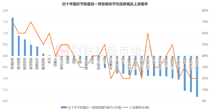 注:近十年国庆节前最后一周各板块平均涨跌幅及上涨概率(2013年至2022年)