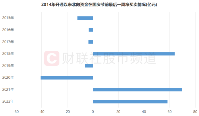 注:2014年开通以来北向资金在国庆节前最后一周净买卖情况(2014年至2022年)