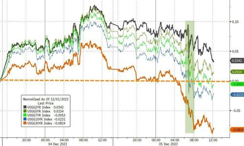 行情数据显示,各期限美债收益率隔夜全线走低。其中,2年期美债收益率下跌6.3个基点报4.583%,5年期美债收益率下跌7.5个基点报4.141%,10年期美债收益率下跌8.9个基点报4.17%,30年期美债收益率下跌11.6个基点报4.299%。