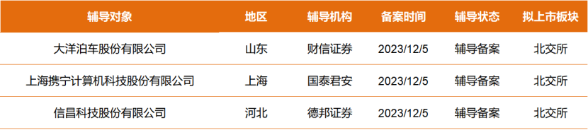 大洋泊车、携宁科技等3家公司启动A股IPO辅导
