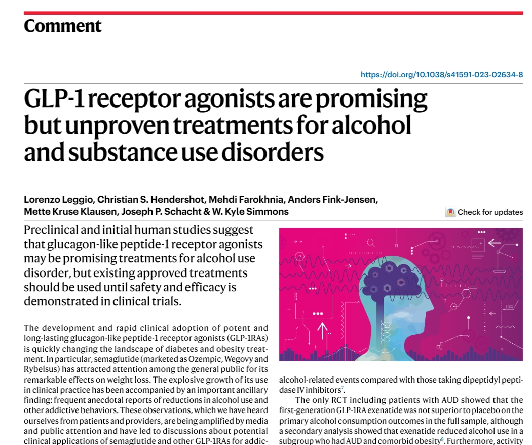 非常有趣的是,有关“GLP-1药物治疗酗酒”显然不只是医学界的探索。上个月在《自然医学》杂志上出现了一篇文章,呼吁医生们不要在研究尚不充分的情况下使用这种药物治疗酗酒问题。