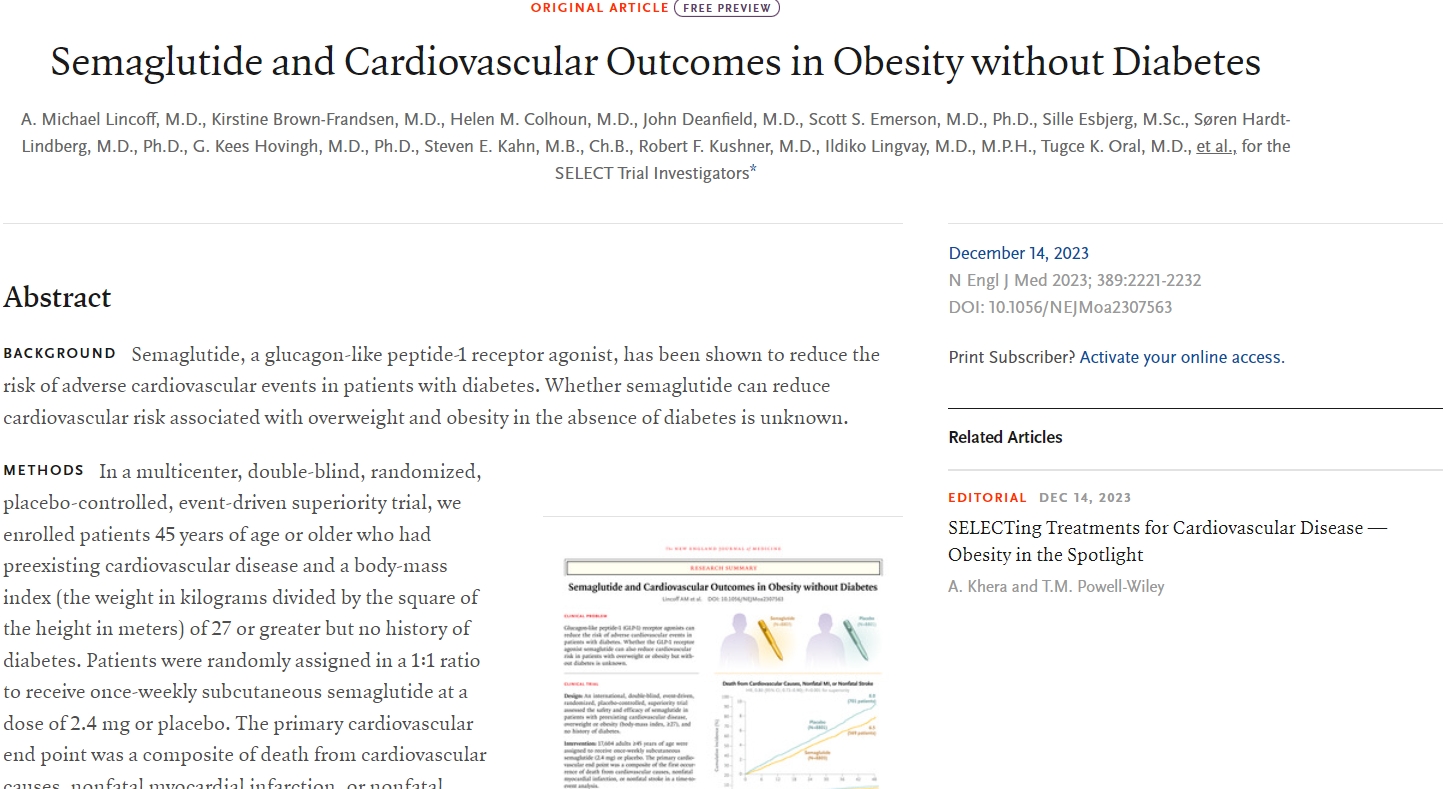 在11月发表的一篇论文中提到,司美格鲁肽将患有心脏病的肥胖和超重人群,心脏病发作和中风等事件的风险降低了20%。另一项针对肥胖和某种类型心力衰竭患者的试验发现,司美格鲁肽能改善症状并使他们更容易展开锻炼。眼下,这种药物能否减少心脏斑块、改善心力衰竭、减少中风风险等一系列研究正在进行中。