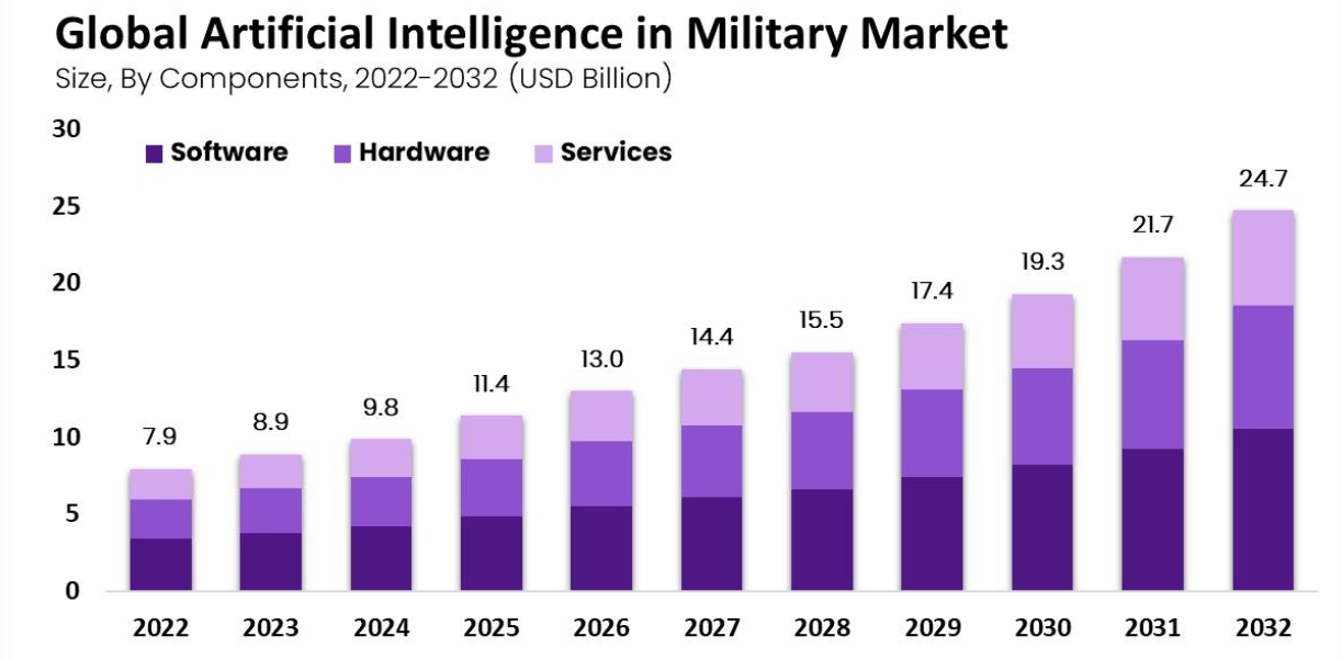 (军事AI市场预测,来源:market.us)