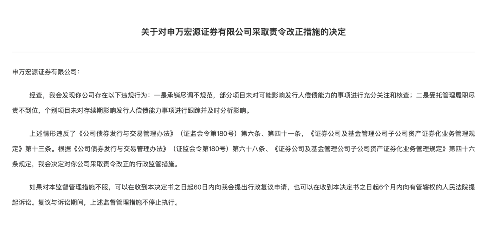 最终,证监会决定对申万宏源证券也采取责令改正的行政监管措施。