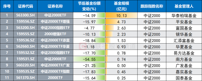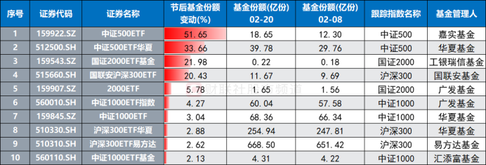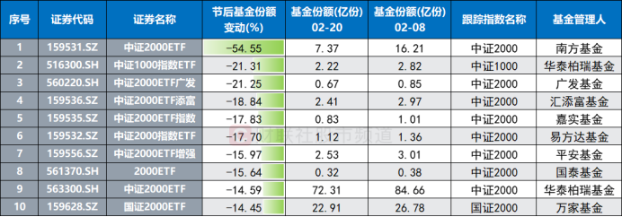 注:中证2000指数相关ETF节后基金份额变动情况(截至2月20日数据)