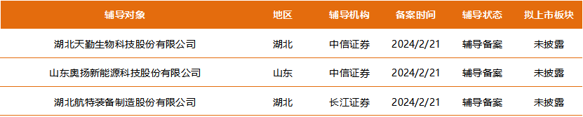 天勤生物、奥扬绿能等3家公司启动A股IPO辅导。