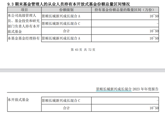 年报数据也应证了此点,刘彦春对景顺长城鼎益的持有份额从2023年中期的0份额增加至年末的10-50万份。同样的,景顺长城高级人员、基金投资和研究部分负责人持有该基金份额也提升至10-50万份。