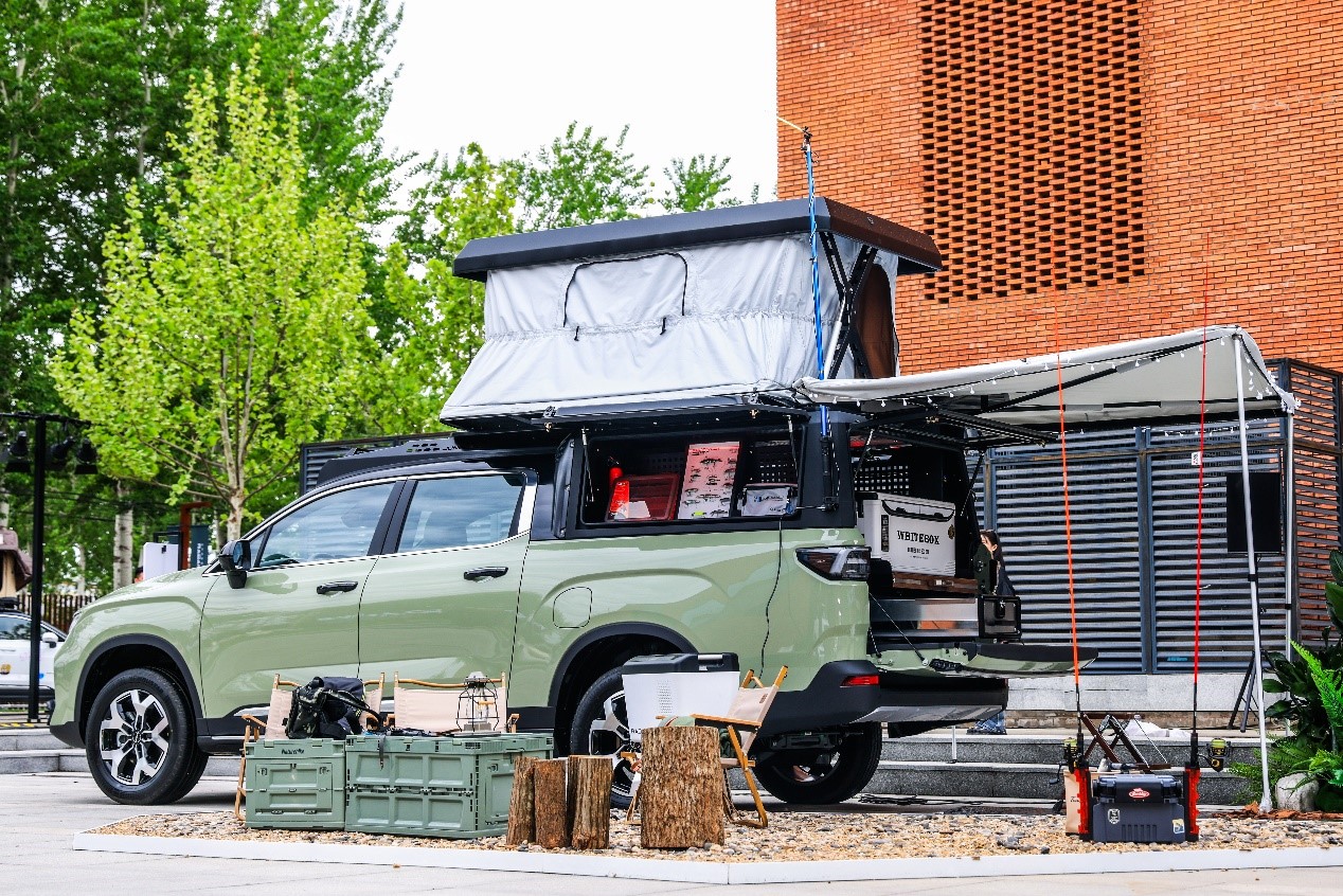 除了表现出智能物联方面的极大优势外,展车还带来了令人惊叹的场景解决方案,它加装了电动升顶帐篷和270°手动侧边帐篷,不仅可以为用户遮阳挡雨,纵情享受户外的乐趣,还能在疲倦的时候有一个舒适安稳的休息空间,大大提升了户外露营钓鱼的趣玩体验。在装载方面,它利用超大的后斗,改装了百变魔盒+滑轨托盘+双层置物架,可以轻松收纳多种大件露营、路亚装备,包括钓鱼人的最爱打氧箱,保证鱼获新鲜。同时,用户还可以利用它的70升前备箱,选装吉利雷达最新推出的智能物联冰箱,随时随地享受清凉。