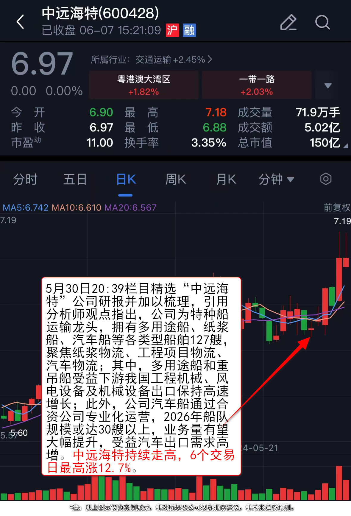 文章发布后,中远海特在弱势行情下持续走高,区间最高涨幅达到12.70%。