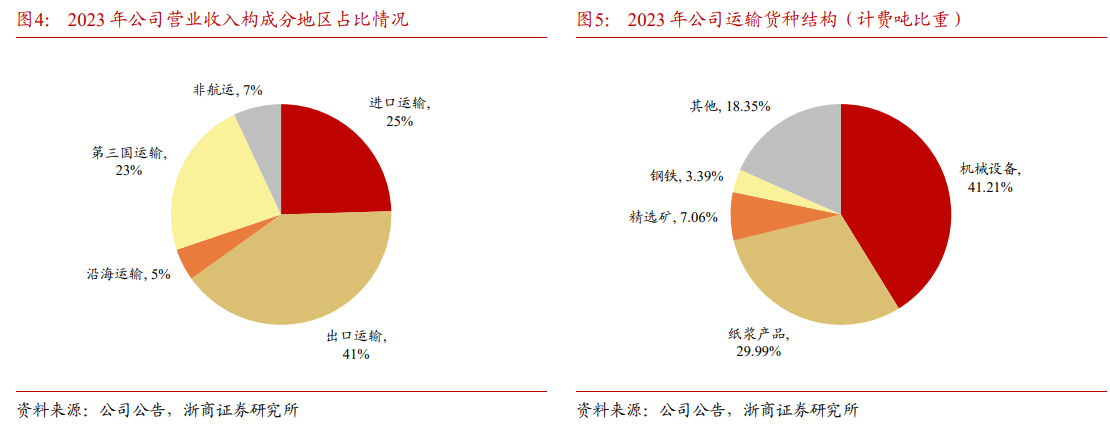 公司旗下拥有和经营性租赁的纸浆船、半潜船、多用途船、重吊船、木材船、沥青船、汽车船等各类型船舶127艘,重点布局聚焦纸浆物流、工程项目物流、汽车物流三个关键产业链的延伸拓展。