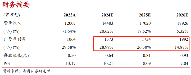 李丹预计公司2024-2026年EPS分别为0.64、0.81和0.93,对应PE分别为10.2、8.1和7.0倍,首次覆盖,给予“增持”评级。