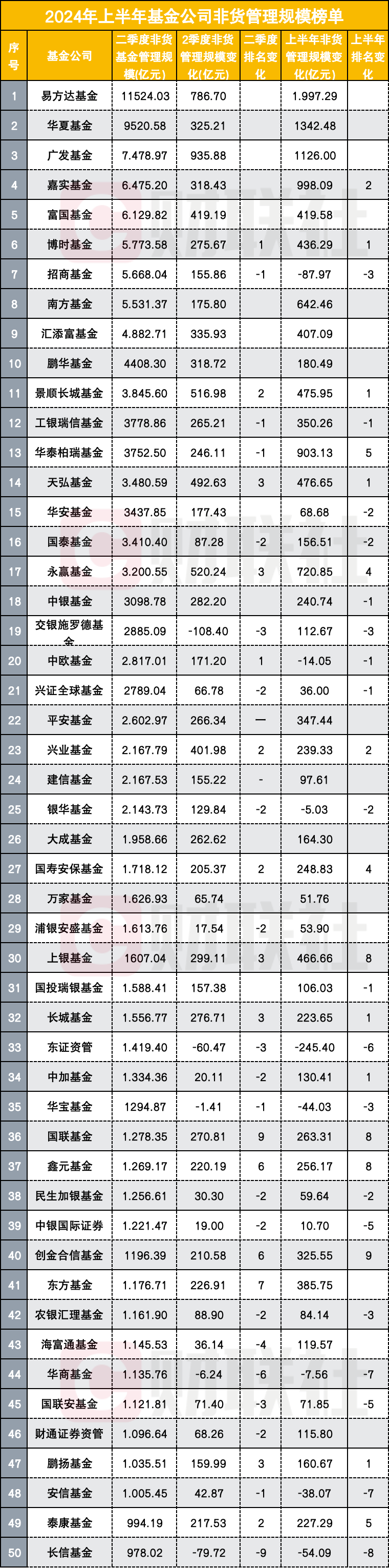 就具体公司而言,广发基金二季度非货管理规模增量达935.88亿元,是行业里这一指标增量最高的公司;易方达基金二季度非货管理规模增长了786.70亿元,在所有基金公司中增量排名第二,且在上半年非货管理规模增量逼近2000亿元。