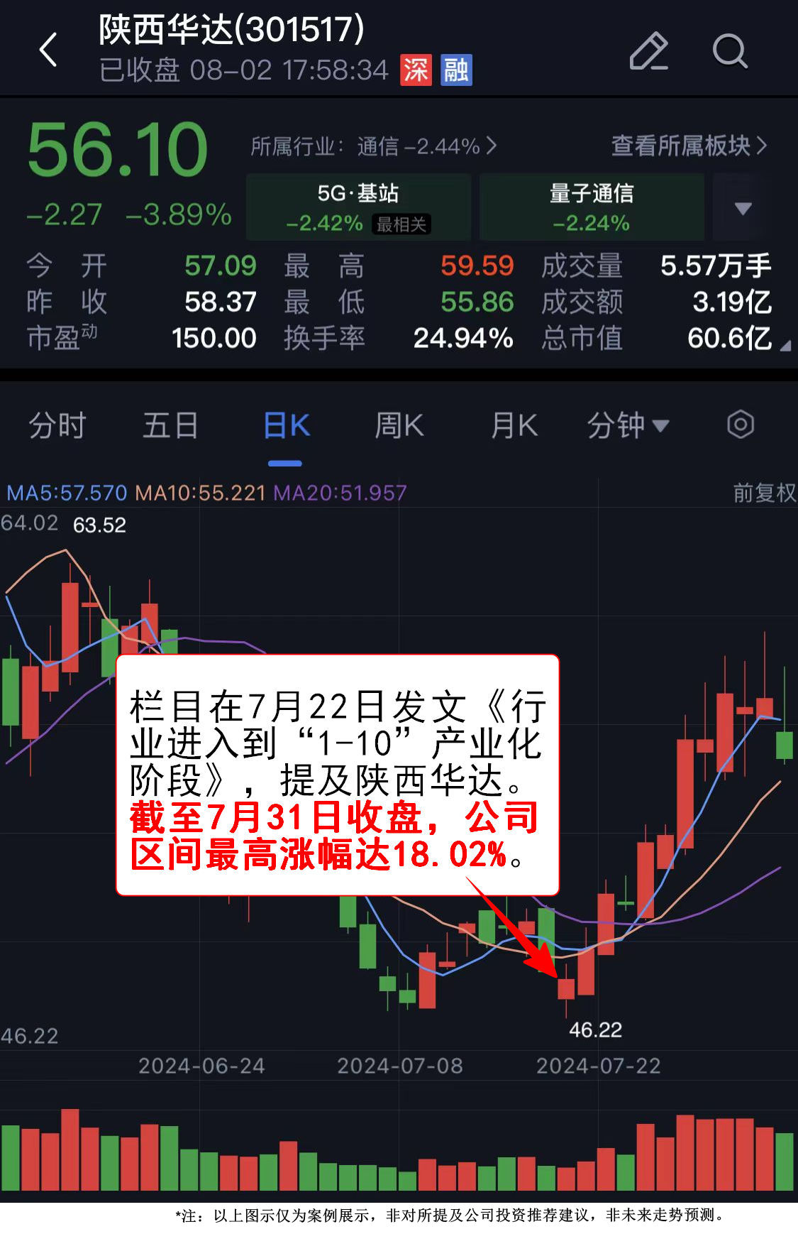 文章提及陕西华达,公司随后持续拉升,截至7月31日收盘区间最高涨幅达18.02%。