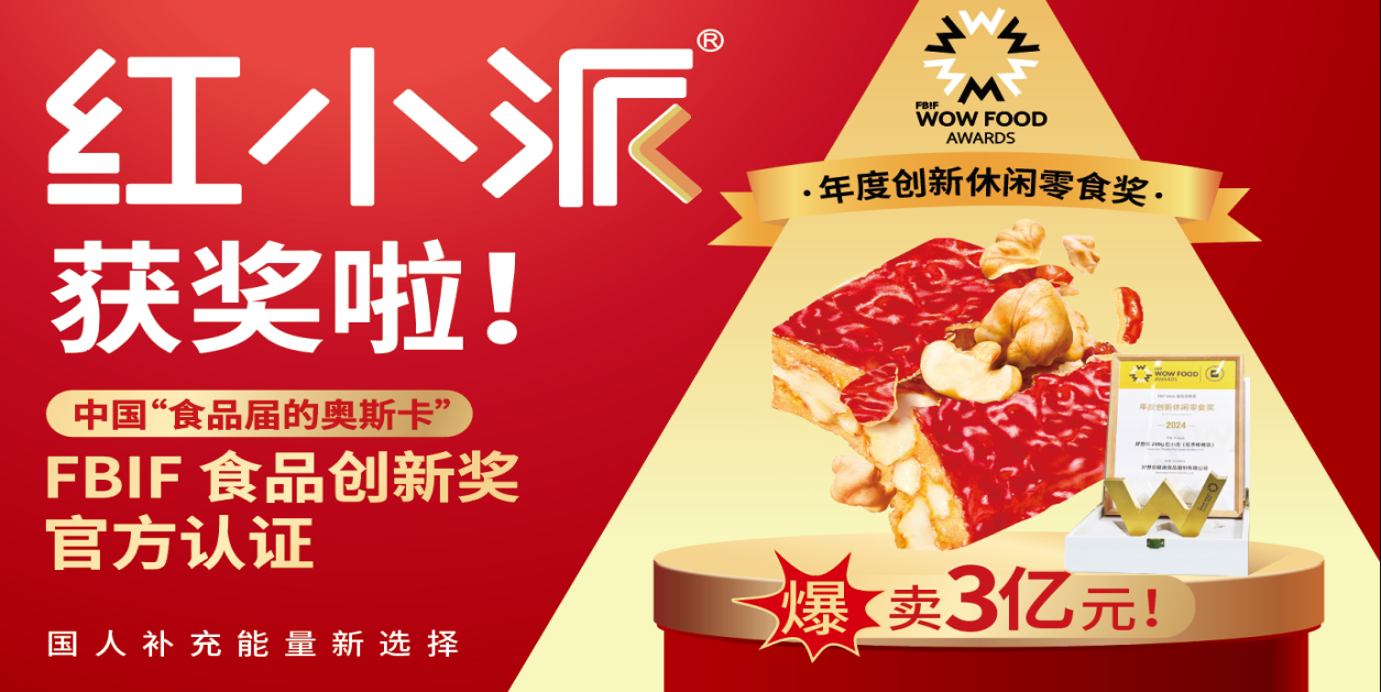 6月25日,红小派荣获被誉为“食品界奥斯卡”的FBIF年度创新休闲零食奖;