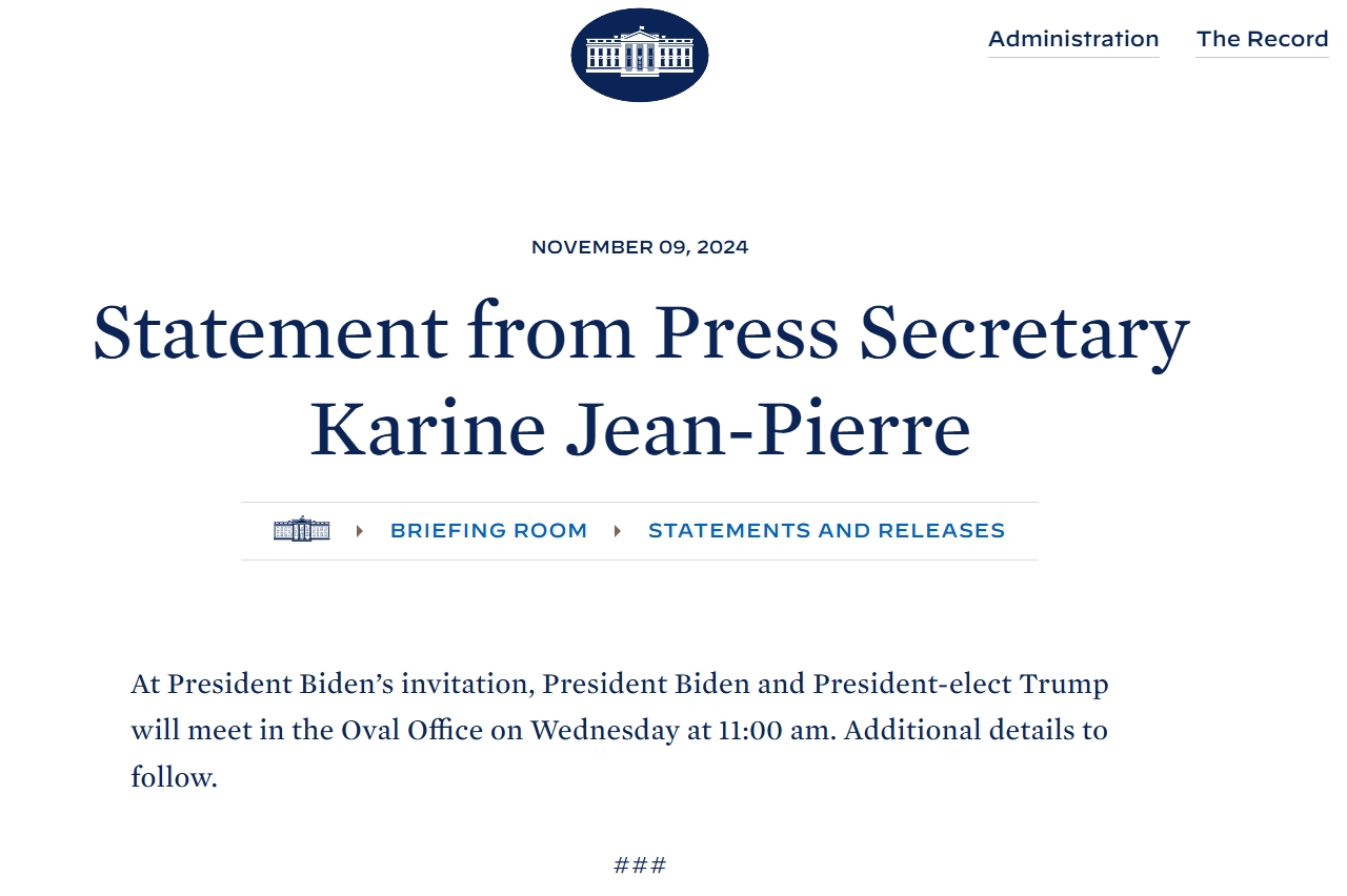 敲定国会归属后,市场将会密切关注“特朗普2.0班子”的构成情况。白宫周六宣布,拜登将在下周三会见特朗普。这也代表着两届政府的过渡交接正式开始。