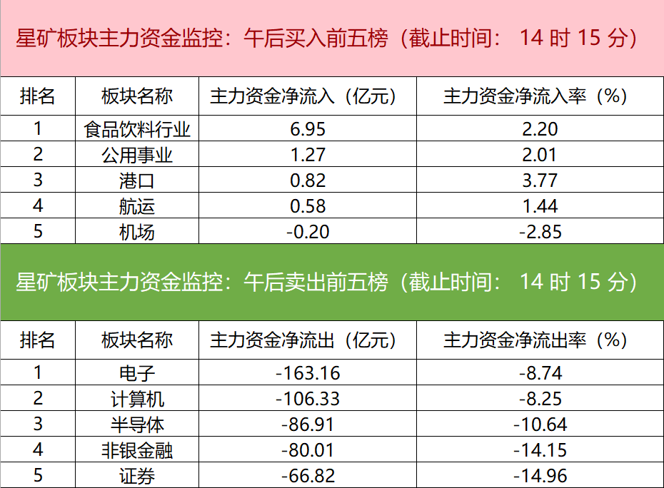 14:20:12【主力资金监控:电子板块净流出超163亿元】