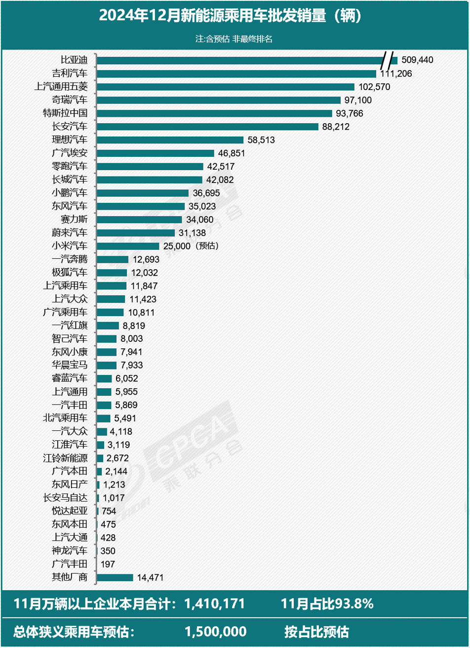 17:31:29【乘联会:预估2024年12月全国新能源乘用车厂商批发销量150万辆 同比增长35%】