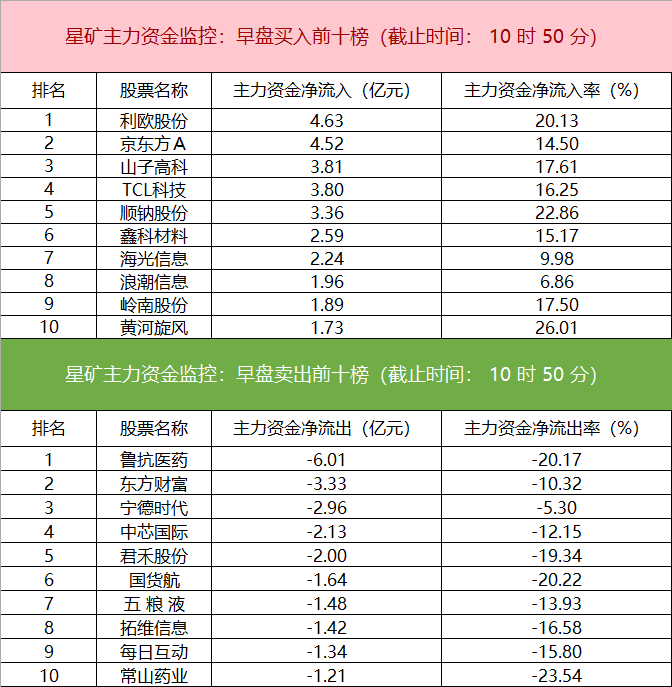 10:55:28【主力资金监控:鲁抗医药净卖出超6亿】